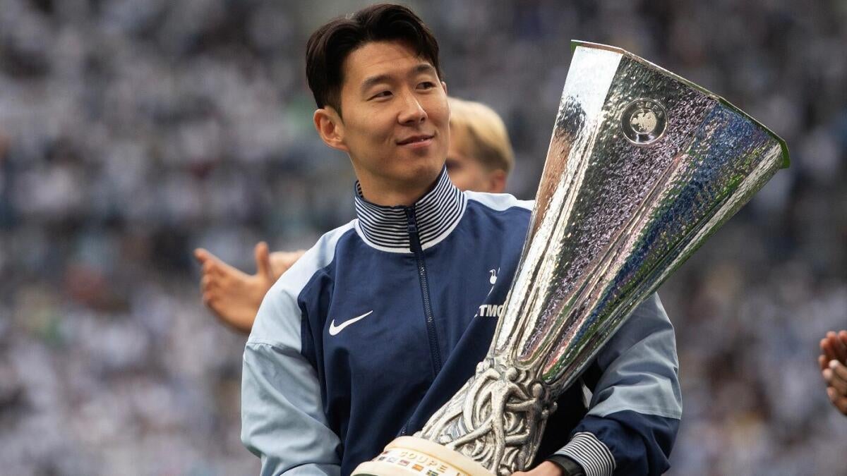 মে মাসে উয়েফা ইউরোপা লিগের ফাইনালের চূড়ান্ত হুইসেল অনুসরণ করে বিলবাওয়ের সান মেমস স্টেডিয়ামে হিউং-মিনের ছেলে হাঁটুতে নামার সময়, উদযাপনের…